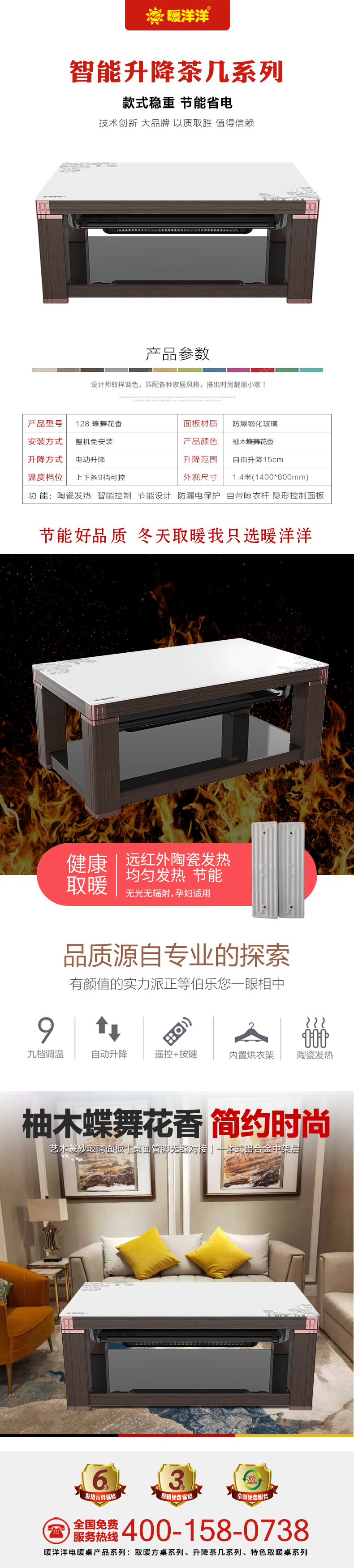 暖洋洋電暖桌·茶幾售后保障:凡購買暖洋洋電暖桌·茶幾,即可整機免費保修3年,發熱器元件保修6年,大品牌有保障,值得信賴!幸福家庭暖洋洋 有家有愛暖洋洋