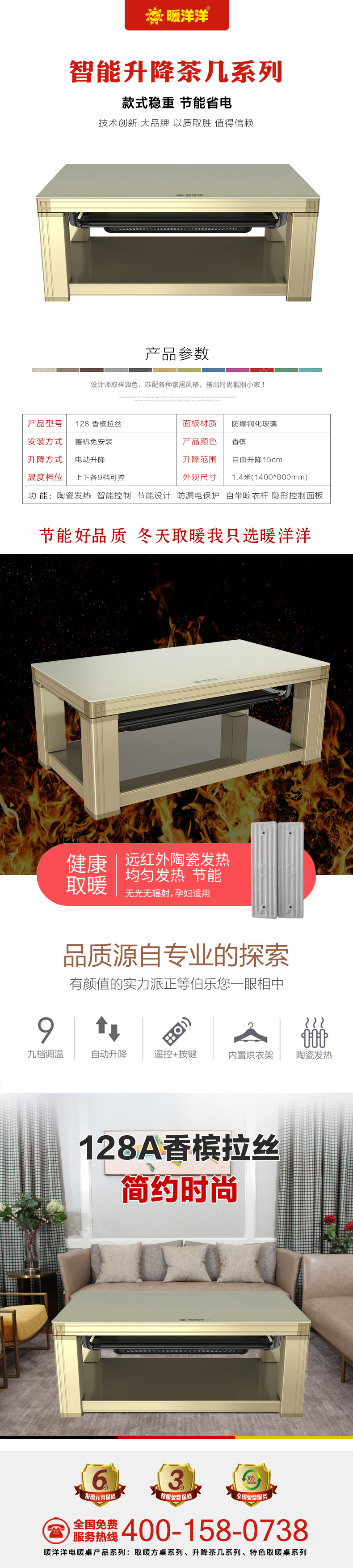 暖洋洋電暖桌·茶幾售后保障:凡購(gòu)買暖洋洋電暖桌·茶幾,即可整機(jī)免費(fèi)保修3年,發(fā)熱器元件保修6年,大品牌有保障,值得信賴!幸福家庭暖洋洋 有家有愛暖洋洋